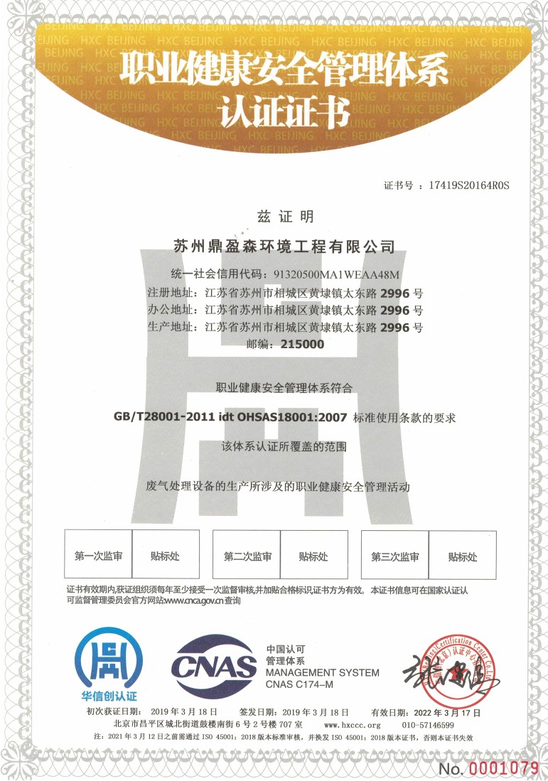 工业废气处理资质认证证书